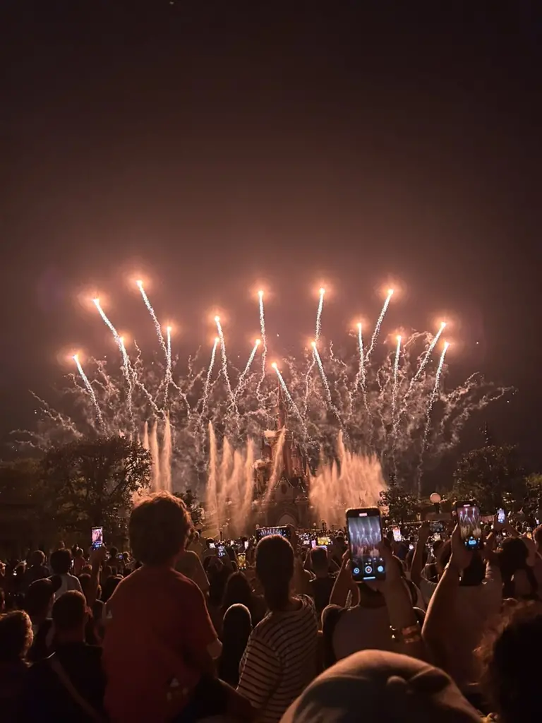Seara (aproape de închiderea parcului), ne-am apropiat de castel (și recomand să o faceți și voi dacă stați acolo toată ziua) pentru că a urmat un moment destul de spectaculos plin de focuri de artificii și proiecții și m-am simțit ca și cum am redevenit un copil pentru 20-30 de minute cât a ținut momentul.